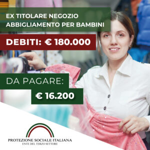 La storia di Angela (nome di fantasia) è la storia dell’ex titolare di un piccolo negozio di abbigliamento per bambini che, a causa della recente Pandemia legata al Covid 19 e della concorrenza di un centro commerciale nelle immediate vicinanze, si è trovata in una situazione di indebitamento con i fornitori e il fisco. Angela, trovandosi …